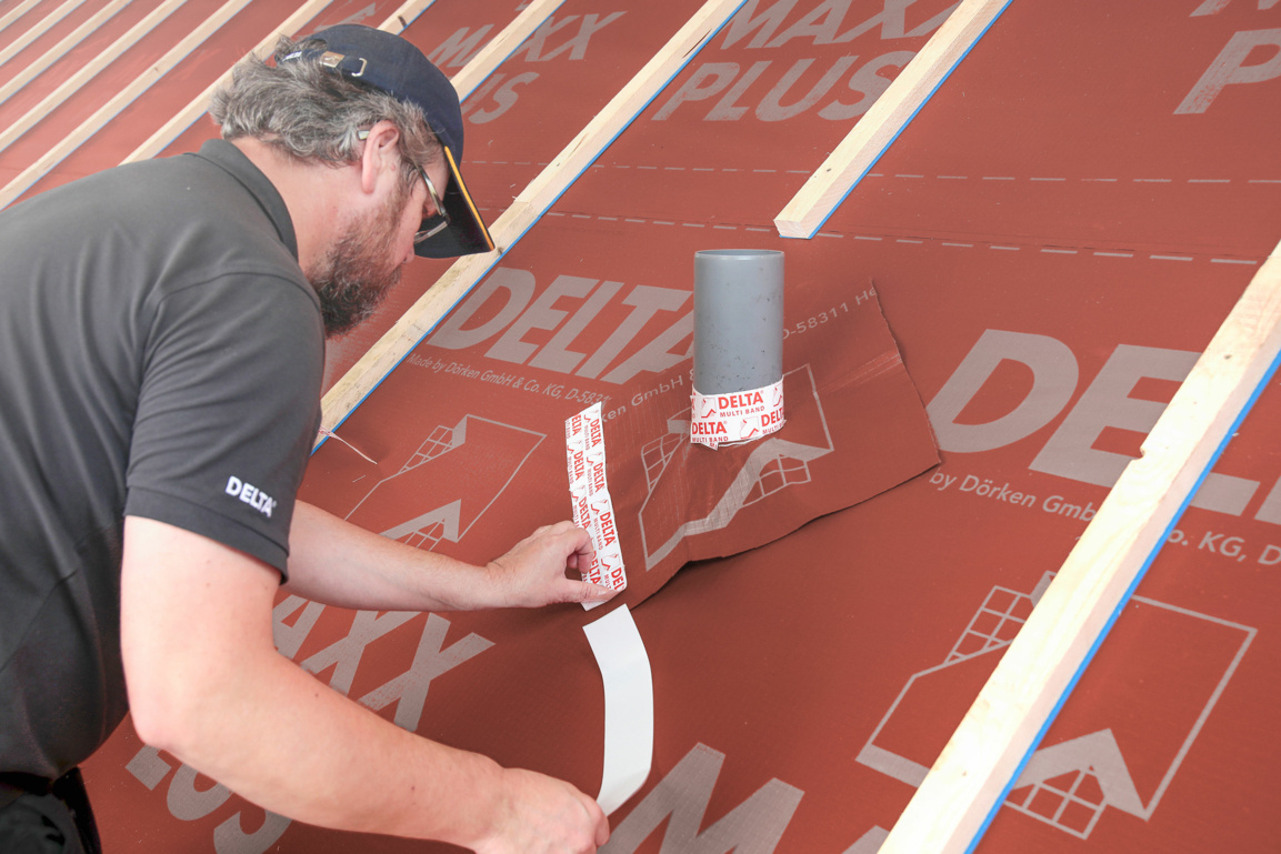 Taśma klejąca DELTA®-MULTI-BAND może być stosowania zarówno wewnątrz, jak i na zewnątrz budynków. Jest używana do wykonywania połączeń odpornych na działanie powietrza, wiatru i deszczu na różnych podłożach oraz do sklejania zakładów membran dachowych. Jej wszechstronne zastosowanie umożliwia także naprawy drobnych uszkodzeń.